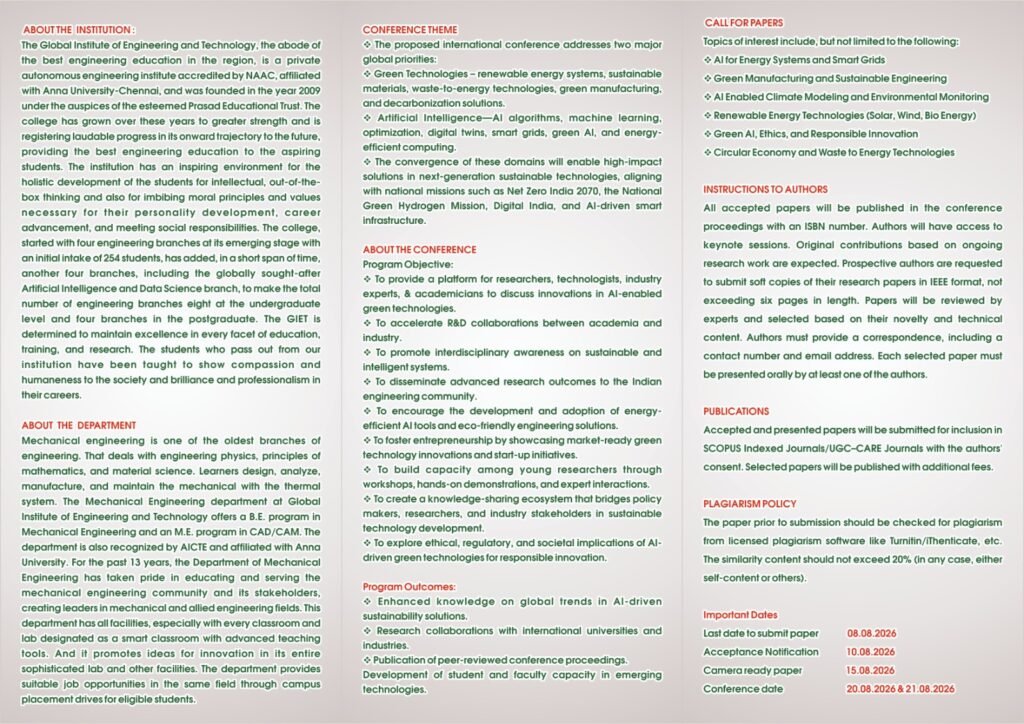 EVENTS INTERNATIONAL CONFERENCE ON GREEN TECHNOLOGIES AND ARTIFICIAL INTELLIGENCE (GTAI 2026) 20th and 21st August 2026