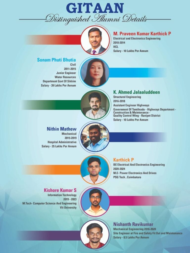 To be recognized as a value-adding entity, creating an everlasting bonding between the alumni, students, industry, and Global Institute of Engineering and Technology.